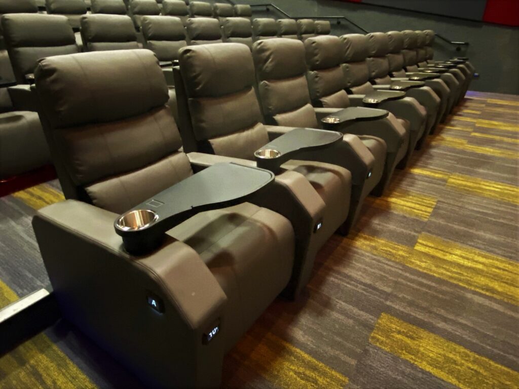 The Capitol Cinemas are pleased to present “the Club.” This four-screen addition to the Capitol is designed for our more discriminating guests. Relax in a private lobby featuring a contemporary vibe with a lounge, fireplace and custom artwork. The auditoriums feature plush powered reclining seats with individual trays. And of course, the picture and sound are top notch.
